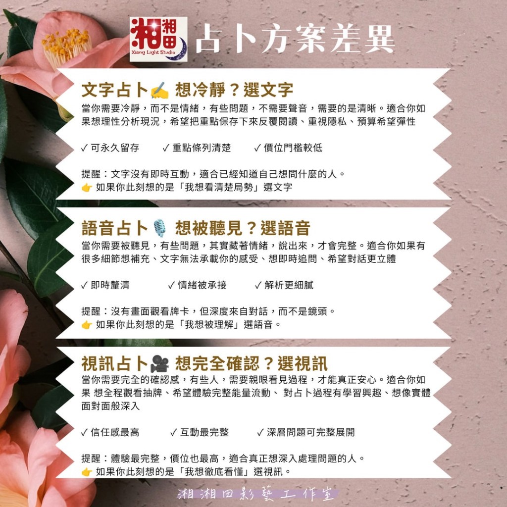 為了讓大家在預約時不再猶豫「要算哪一種」、「要不要加選星盤還是靈魂課題」,我決定: